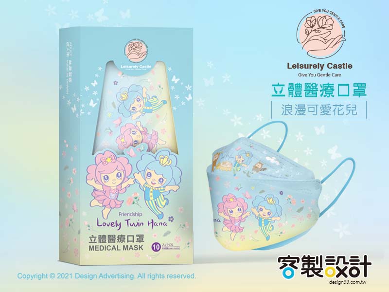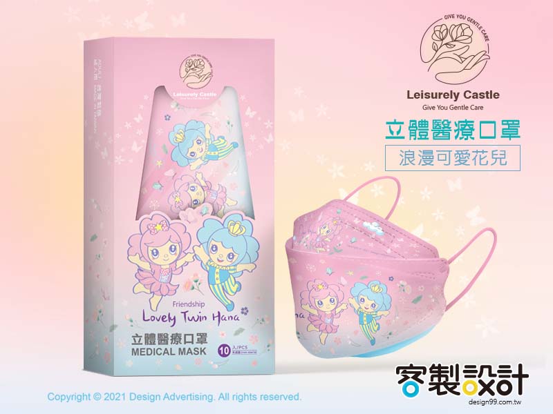 此系列口罩是以櫻花主題設計,櫻花公主和王子在櫻花園相遇,在繽紛浪漫櫻花裡盡情快樂飛舞,陶醉在戀愛的氛圍裡,與大家分享喜悅與幸福。希望收到此口罩的親友,可以感受到你滿滿的喜悅與幸福。 將口罩當禮送,是一種暖心的問候,更是希望彼此相互鼓勵,一起為健康加油!