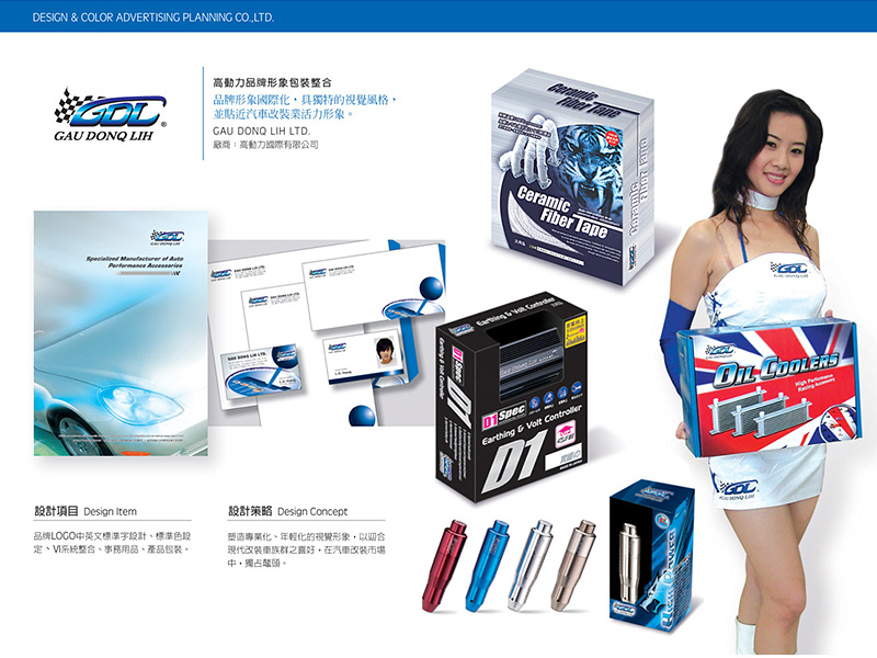 高動力品牌形象包裝整合/訴求品牌形象國際化,具獨特的視覺風格,並貼近汽車改裝專業活力形象。