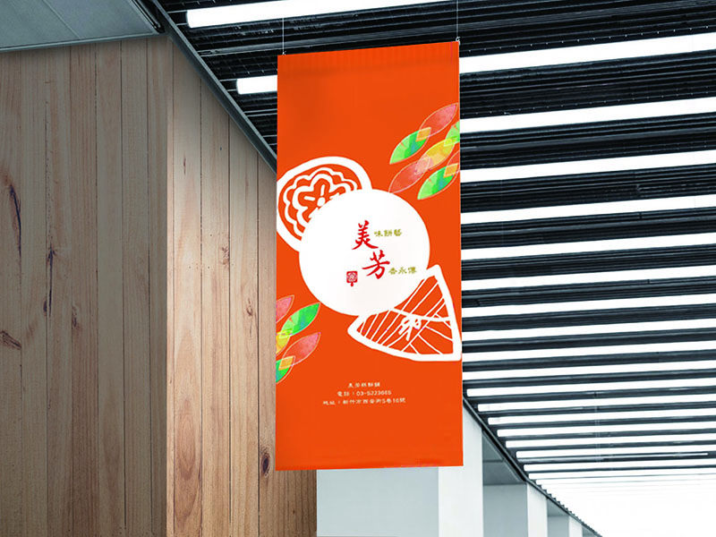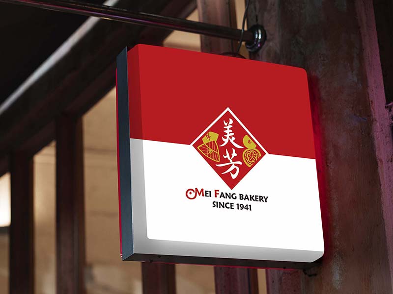 延續舊有LOGO形式加以簡化,並修改美芳書法體,讓閱讀性更明確。下方帶入英文名及品牌創始年份,讓品牌推廣走向國際化。英文名M字左邊圈起的圖形,傳達的是餅的意念。